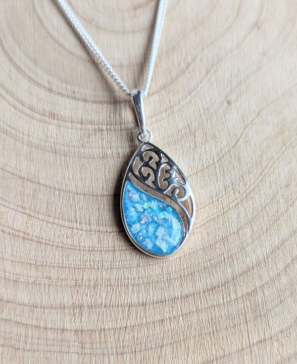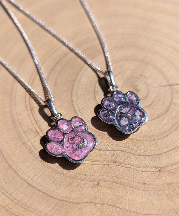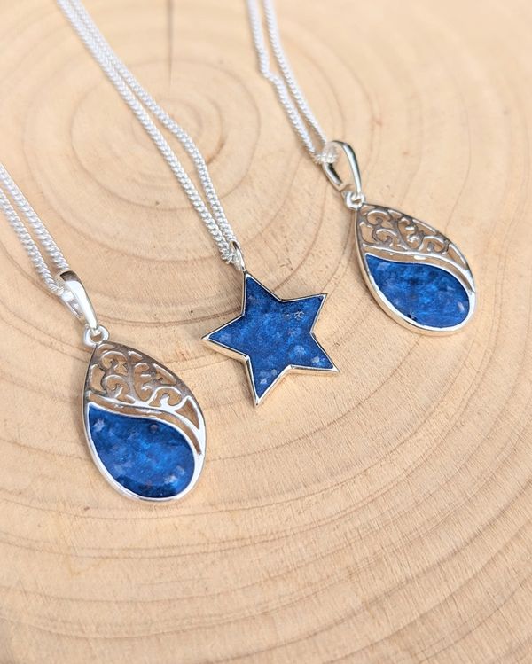 Ashes encapsulated in coloured resin, comes with sterling silver chain